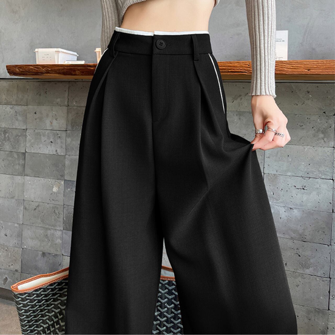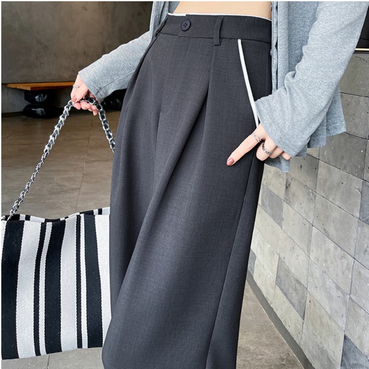 様々なトップスと相性抜群で、着こなしの幅が広がります。デイリーユースからオフィスシーンまで、活躍の場を選びません。