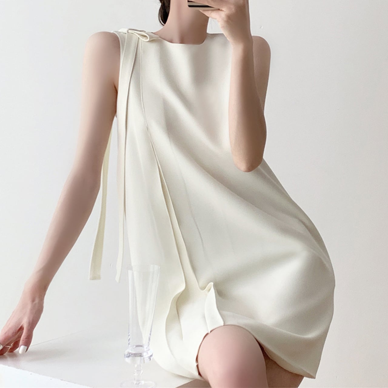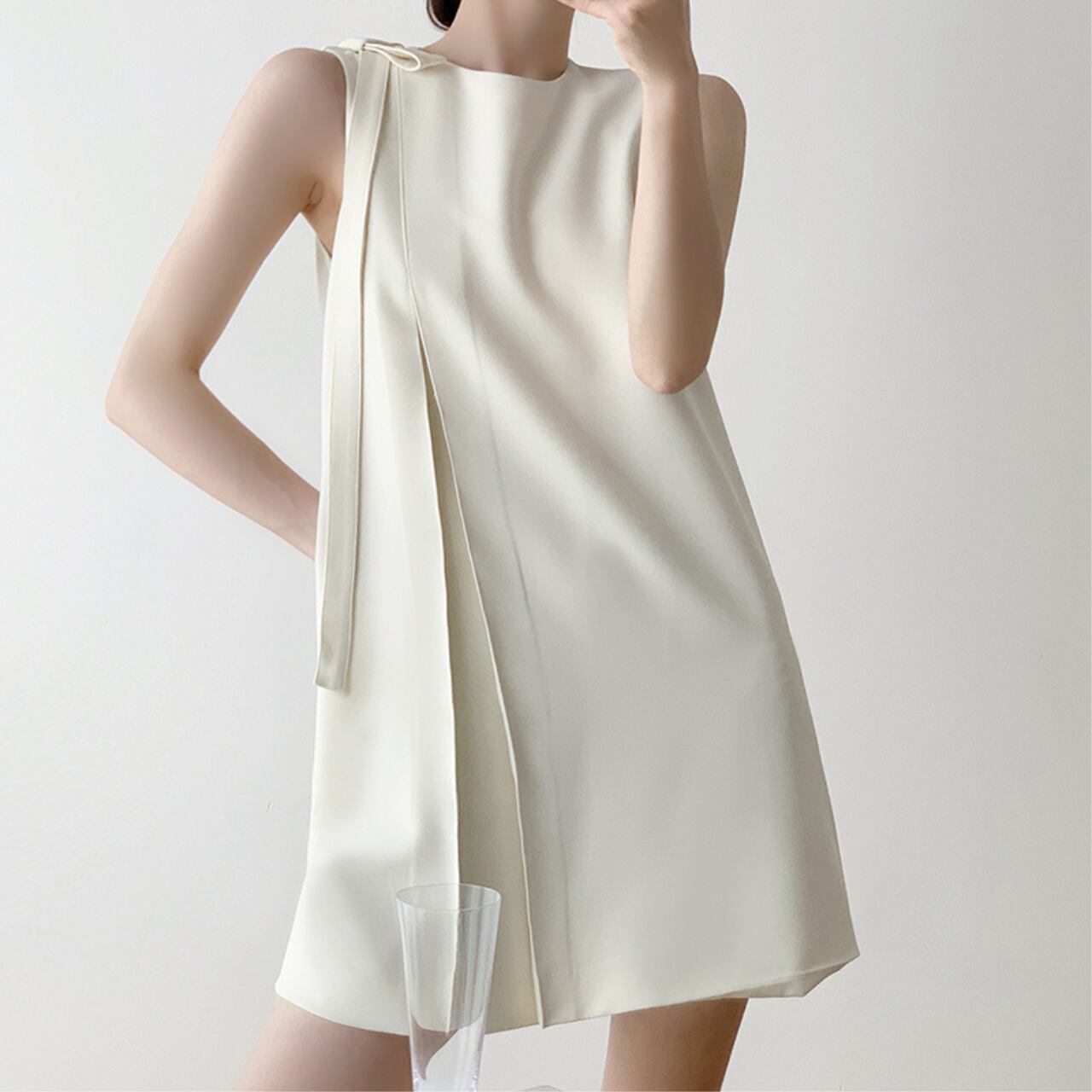 さりげないディテールが魅力の「エフォートレスエレガンス ワンショルダーワンピース」。柔らかなアイボリートーンと、肩から流れるリボンが上品なアクセントを添え、シンプルながらも洗練された印象に。ストンと落ちるAラインシルエットは体型を選ばず、美しいドレープ感で女性らしさを引き立てます。カジュアルにもフォーマルにも対応する万能デザインで、デイリーから特別な日まで幅広く活躍。ミニマルな中にもセンスが光る一着です。